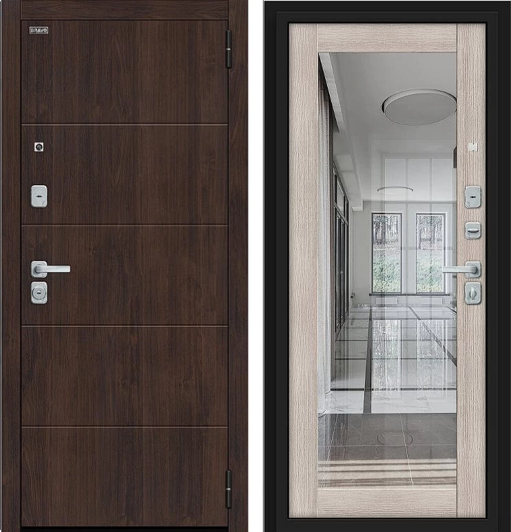 Надежная входная Дверь Браво Флэт/BChrome Almon/Cappuccino Melinga премиум класса по цене 42 687 руб. Большая толщина стали защитит от проникновения в ваш дом, квартиру или коттедж. Используется очень качественная фурнитура: замки, цилиндры, ручки, защелки. Покрытие и отделка двери изготовлено под внимательным контролем производителя. Дверь имеет долгий срок службы и гарантию.