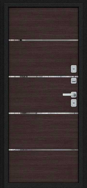Надежная входная Дверь Браво Thermo Лайн/BChrome Букле черное/Wenge Melinga премиум класса по цене 46 537 руб. Большая толщина стали защитит от проникновения в ваш дом, квартиру или коттедж. Используется очень качественная фурнитура: замки, цилиндры, ручки, защелки. Покрытие и отделка двери изготовлено под внимательным контролем производителя. Дверь имеет долгий срок службы и гарантию.