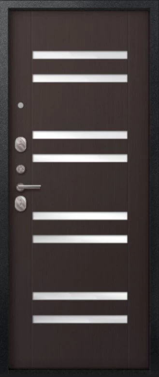 Надежная входная Дверь V-07 Черный муар - Темная лиственница премиум класса по цене 42 287 руб. Большая толщина стали защитит от проникновения в ваш дом, квартиру или коттедж. Используется очень качественная фурнитура: замки, цилиндры, ручки, защелки. Покрытие и отделка двери изготовлено под внимательным контролем производителя. Дверь имеет долгий срок службы и гарантию.